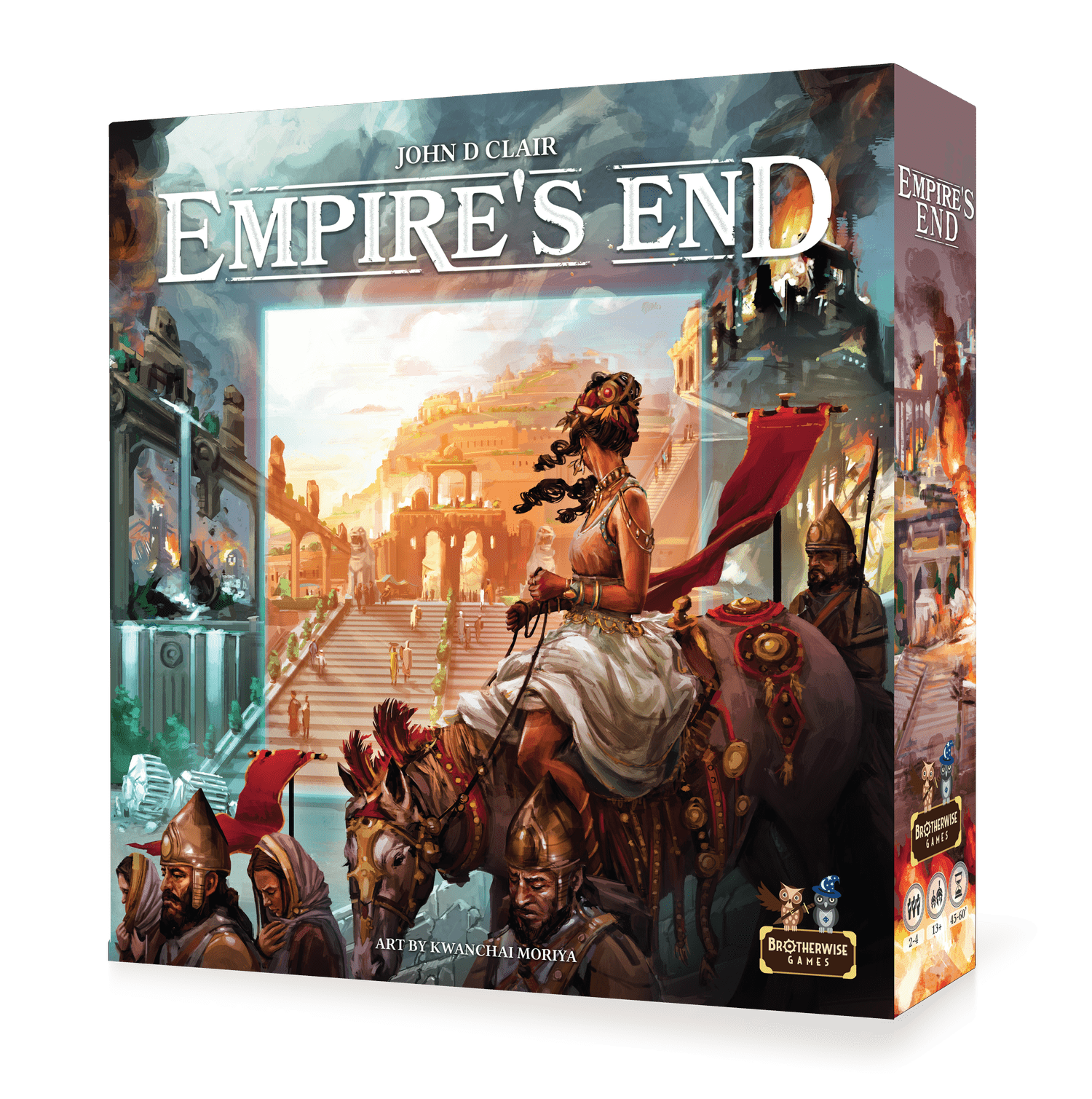 You lead a grand civilization at the height of its influence, but can you save it from collapse? In Empire's End, 2-4 players compete to keep calamity at bay. Empire's End marries the intuitive and elegant mechanism of reverse-bidding with engine-building, long-term planning, and strategic depth. The result is a game with a quick tempo, abundant tension, and multiple challenging paths to victory.