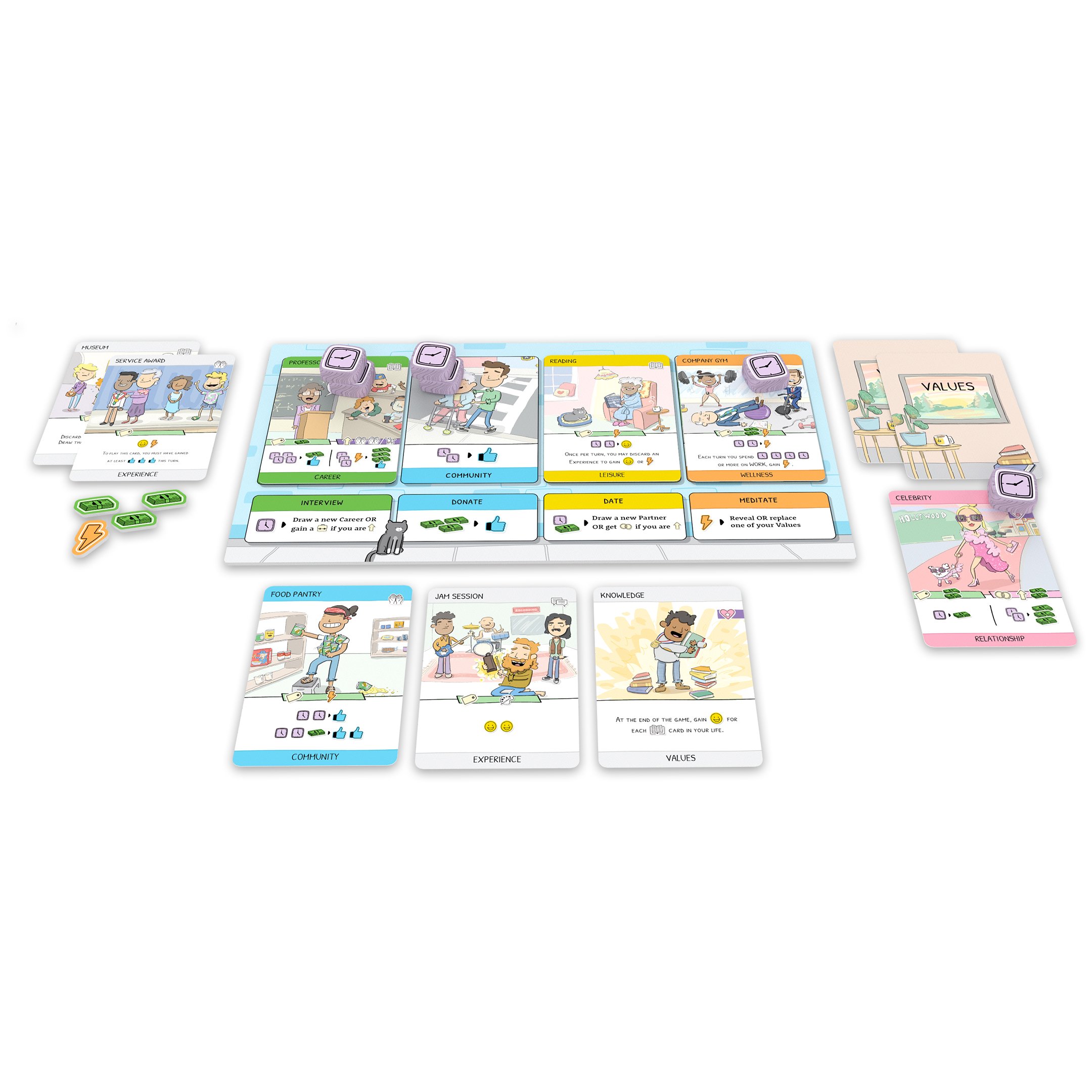 Live your best life in Adulthood! Every turn, this game challenges 1-4 players to spend Time and Energy to generate Money, Happiness, and positive Impact. Featuring the art of Tim Brierly, Adulthood highlights the joys and absurdity of everyday life.